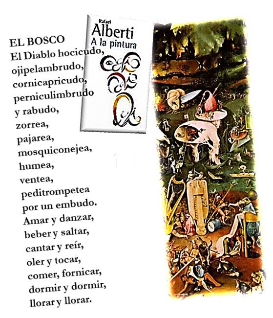 Alberti, en este libro, vuelve su mirada al "diablo ratoneril y tierno del Bosco", que en el poema 17 se vuelve "diablo hocicudo, / ojipelambrudo, / cornicapricudo, / perniculimbrudo / y rabudo...", jugando así con los adjetivos y con los verbos, haciendo gala de un delirio verbal que parece corresponder a un delirio pictórico [**].