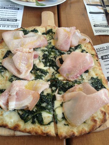 Las he probado finas, deliciosas, en Roma y Córcega, y muy bastotas en Nápoles, su verdadera patria. Disfruto de vez en cuando con algunas pizzas satisfactorias -- pocas -- en España y esta primavera pasada probé una notable de masa gruesa en Buenos Aires.