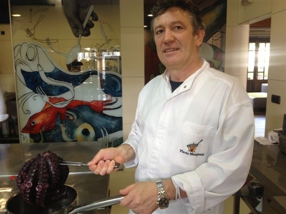 Fiel al dicho popular gallego según el cual el pulpo y el agua no sientan bien en el estómago, comenzó por marinar los cefalópodos en vino.