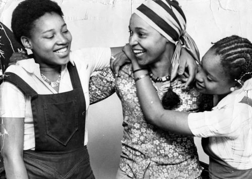Winnie celebra con sus hijas Zenani y Zindzi (derecha) su liberación despuésde meses de estar separadas, mientras Mandela sigue en prisión.