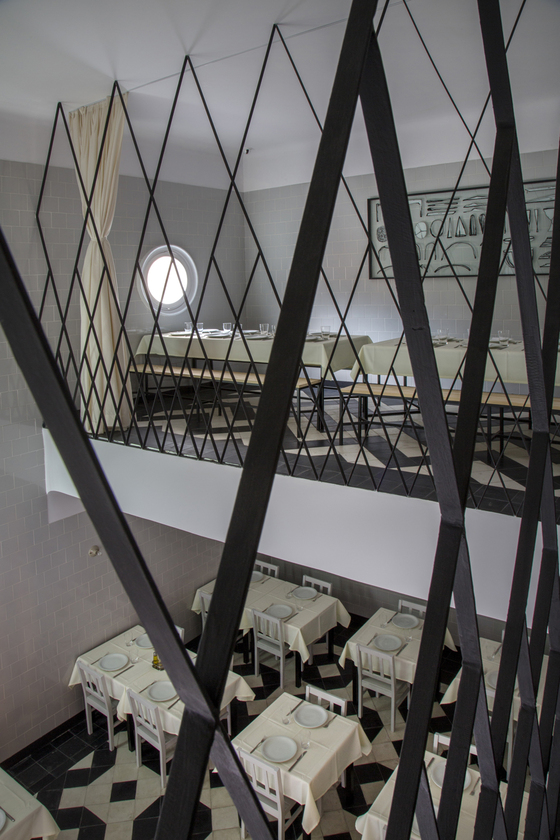 La antigua casa colonial de dos plantas con jardín de finales del siglo XIX, de la que sólo se conserva el cascarón, debió de ser bonita, pero el interior apenas conservaba la escalera original. “De lo encontrado nada nos servía, pero por ahorrar tiempo y dinero decidimos trabajar sobre la estructura moderna existente reconstruyendo sobre ellas los improbables salones de un pasado inexistente”. Puede que sea ese pasado inexistente el que consigue el aire familiar para el restaurante. O las sillas y mesas pequeñas recicladas que ahora conviven las diseñadas por ellos. Con todo, lo que cambió el lugar fue abrir una gran ventana al jardín lateral. El aire y la luz que entran por esas ventanas se extienden por todo el local que en lugar de barandillas o tabiques tiene celosías metálicas pintadas de negro. Así, aireando el espacio y sumando sus metros cúbicos, los arquitectos redujeron el presupuesto de un local que se disparaba. Cuentan que los precios en Brasil son altos, pero la calidad de los materiales no es europea. Además del escaso catálogo, la industria brasileña está muy protegida. “Para nuestra sorpresa, apenas quedan buenos artesanos, y los oficios se están perdiendo o más bien ya desaparecieron. Veníamos con la mente pensando en Portugal, donde aún es posible encontrar buenos artesanos y oficios magníficos, pero no. Precios caros o muy caros y calidad regular o mala. Fuera de las grandes ciudades, parece ser que la cosa cambia, al menos en el precio”.