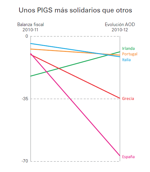 El destrozo se justifica en público y en privado con idénticos argumentos: nuestro país cooperaba hasta ahora por encima de sus posibilidades y el recorte responde al mismo ajuste presupuestario que han tenido que realizar otras economías castigadas por la crisis. Los hechos, sin embargo, sugieren una interpretación menos benevolente. Con excepción de períodos puntuales, el esfuerzo relativo de España en este campo ha estado sistemáticamente por debajo de la media de los países europeos (ver gráfico 1). Lo que es más significativo, la ayuda española ha sufrido durante los últimos años un castigo desproporcionado si se compara con países como Irlanda, Portugal o Italia, donde las reducciones de la cooperación no han estado muy por encima del recorte medio del gasto (ver gráfico 2). Todos PIGS, pero unos más que otros.