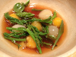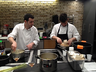 Cuando habíamos terminado la clase nos acercamos a su restaurante gastro. Sentados cerca de la cocina disfrutamos de un menú excepcional cuyos platos no voy a comentar ahora. Los reservo para una crítica en el El Viajero, según mi costumbre.