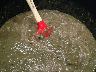 Trituró calamares frescos en la thermomix con una porción mínima de agua mineral que puso a hervir con los mismos resultados. Mezcló este jugo híper yodado con licuado de pepino y obtuvo una sopa de pepino y calamar apabullante.