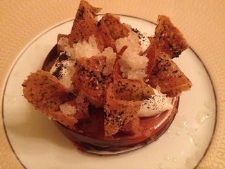 Sin embargo, he visitado dos restaurantes, L´Arpege (3*) y Laserre (2*), donde ciertos rituales se mantienen. Un cocinero de la talla de Alain Passard, nos sirvió una tartita de manzana memorable elaborada con cintas de manzana. Creatividad a raudales.