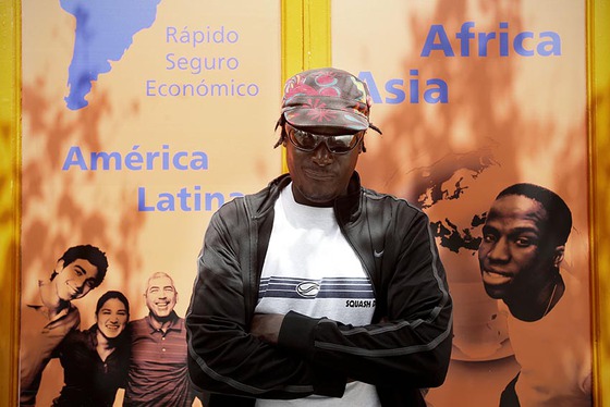 Malik, senegalés en España desde hace 11 años, en un locutorio de Lavapiés. / OLMO CALVO