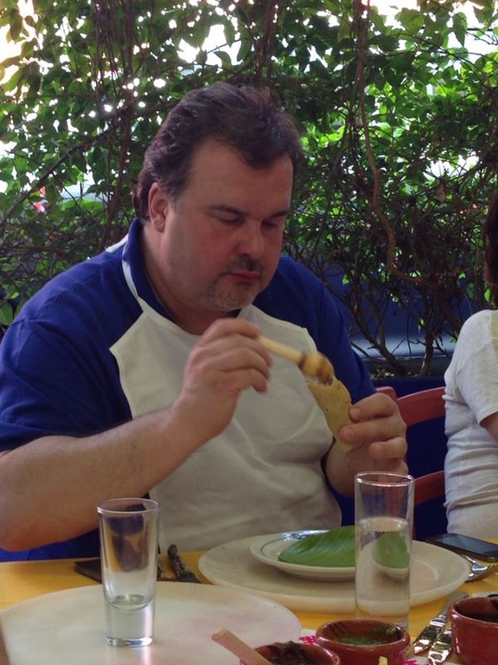 Me pareció delicioso el pan de cazón, mismo nombre con el que se conoce en Andalucía a los escualos, y muy intensa la margarita de mezcal y mango, cóctel delicioso. “Las técnicas de destilación, de origen árabe, también las aportaron los españoles.” Probamos dos familias de salsas excepcionales – moles y pepianes – con cortes de pollo, ave que llegó desde España. Titita me recordó entonces que después de la china la cocina mexicana es la que posee mayor número de salsas.