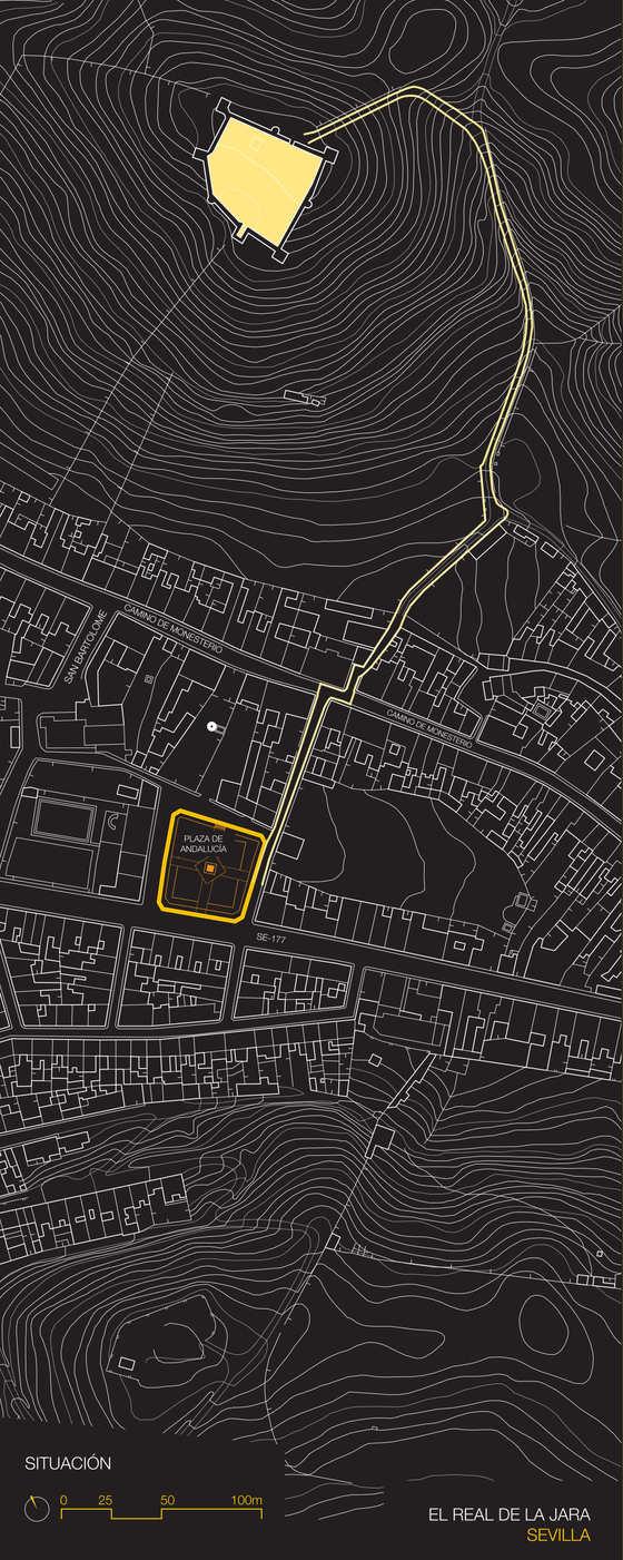 Los arquitectos Lourdes Bueno y Miguel Villegas tuvieron que pensar el sentido de un patio de armas en pleno siglo XXI. Tenían que adecuar el del castillo de El Real de la Jara, en el parque natural de la Sierra Norte de Sevilla, una fortaleza del siglo XIV catalogada como Bien de Interés Cultural construida para proteger el sur de las invasiones portuguesas. Así, optaron por ocupar ese vacío –en su opinión “un interior descarnado”- para convertirlo en un espacio público “para la gente”. Transformarlo en un lugar de encuentro se convirtió en su apuesta para mejorarlo. Y para traerlo al siglo XXI.