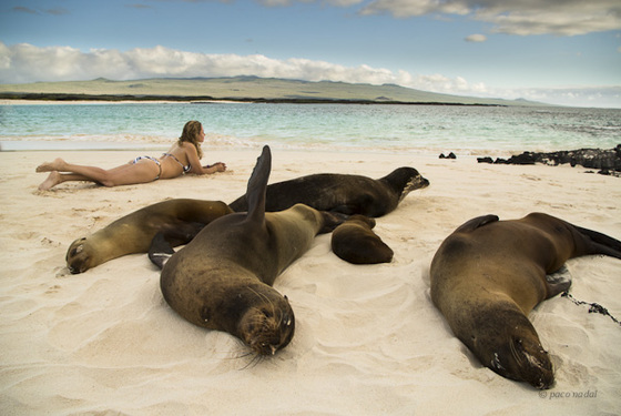Te puedes tumbar a tomar el sol al lado de un lobo marino de 200 kilos de peso sin que se inmute, te puede pasar una iguana por encima del pie mientras haces fotos del paisaje o te tienes que apartar en un sendero porque un piquero patas azules se ha puesto en medio y no está dispuesto a moverse de su soleado emplazamiento para que tú pases, por más que te acerques a él.