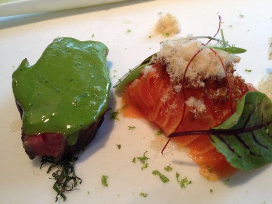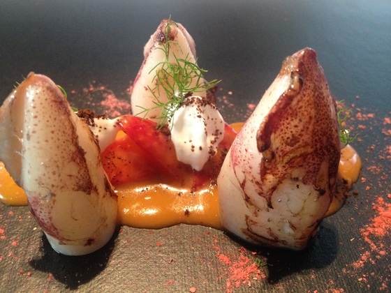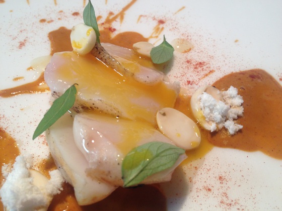 Ya se sabe que sus platos-lienzo evolucionan en la mesa. Después de los primeros ingredientes llegan otros, nuevas cosas que se abren en abanico igual que fuegos artificiales. No hablamos de guarniciones del ingrediente básico, sino de complementos del primer bocado, de su misma esencia. La experiencia entusiasma. En mis dos últimas visitas he vuelto a emocionarme y a sentir cosquilleos en el estómago.