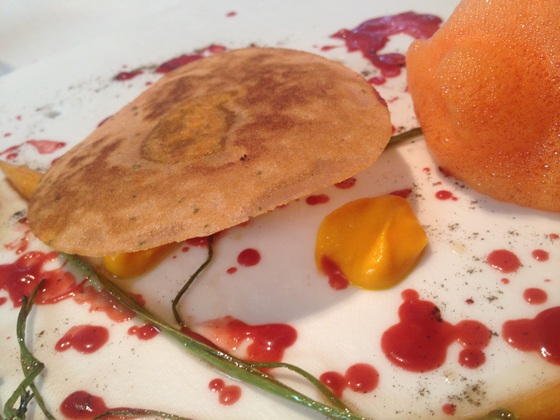 Faltan pocas horas y escasos días para que Diverxo traslade su sede al hotel NH Eurobuilding. Nada nuevo, una mudanza anunciada. Antes de que el local de la calle Pensamiento cerrase sus puertas, donde David Muñoz ha igualado la hazaña que consiguió Alain Ducasse en su momento, tres estrellas en cinco años, yo quería probar su menú de despedida. Como soy incapaz de tomar demasiados platos seguidos le pedí que me permitiera fraccionar la degustación en dos visitas. Las fotografías que siguen, tomadas a pie de mesa, no son más que secuencias parciales de los platos-lienzo que desfilan por su sala.