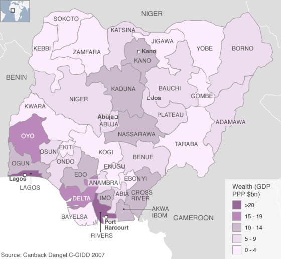 Mapa de Naciones Unidas sobre desequilibrios en Nigeria publicado por BBC News al hilo del inicio de la Conferencia Nacional