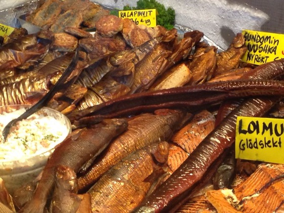 Poco después de llegar a Helsinki me dirigí al Old Market Hall antiguo mercado junto al puerto. Sital y comome habían comentado la capital de Finlandia se ha convertido en uno de los grandes destinos gastronómicos de Europa, quería empezar el recorrido por un enclaveestratégico. Pasé delante del puesto de la familia Andström, maestros ahumadores desde 1879, y compré porciones de pescados distintos. Me gustaron tanto que el pasado viernes antes de regresar me acerqué de nuevo a charlar con su propietaria Hanna Andström