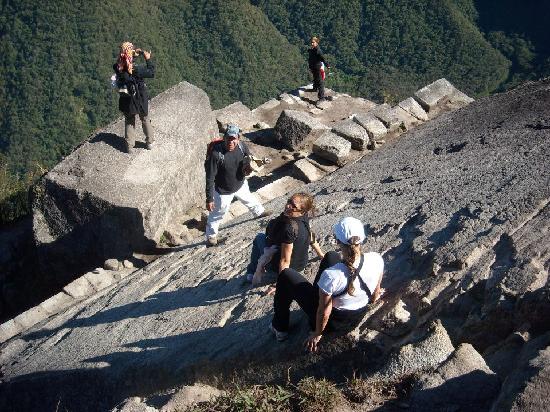 Al Huayna Picchu se puede subir sin problema. Las escaleras son empinadas, pero no hay necesidad de pasar por sitios expuestos (si los buscas, los hay, pero no es necesario). Sí hay peligro de caerse por los escalones, de empinados y estrechos, pero no se cae al vacío...