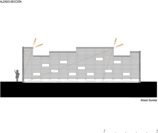El resultado es un contenedor en el que los llenos igualan a los vacíos. Se trata, es evidente, de una caja, pero de una caja que respira –gracias a una cubierta escalonada- y de un contenedor que reacciona al lugar, como demuestra la escollera de granito lateral que llega a colarse en su interior. “La instalación pretende tener una doble función didáctica”, explican los arquitectos.Por eso un panel explicativo muestra en qué consiste el proceso de compostaje a partir de materia orgánica. Además, al ubicarse lindando con la Escuela de Arquitectura este sistema constructivo sencillo, realizado con materiales sencillos persigue recordar a los alumnos las posibilidades del reciclaje y de la gestión de residuos.