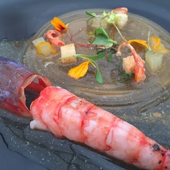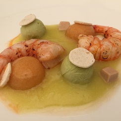 En el jurado figuraban, entre otros, dos grandes cocineros, Ricard Camarena y Quique Dacosta, además de un profesional de la talla de Pedro Morán (Casa Gerardo ).En mimemoria conservoel cuadro de armonías y desencuentros de las recetas presentadas.A la “Gamba en salazón con esfera de albahaca, yema de tomate asada y turrón de almendras” le sobraban juegos técnicos. Abusaba de sferificaciones y de contrastes de temperaturas que no aportaban nada. En la “Gamba anisada con pilpil espumoso y toques ácidos y amargos” chirriaba la malto dextrina en calidad de espesante. Dosdesafortunados ejemplos de lallamada tecno cocina. Otra gran receta “Bullabesa de gamba roja”, podría haber resultado ganadora si su artífice no hubiera pospuesto el sabor en favor del lucimiento estético. Con los mismos ingredientes colocados en un plato hondo, más cantidad de caldo y la gamba mejor integrada el resultado habría sido bien distinto. Mismo defecto que la “Gamba con miso y ajo negro” en caja de porexpan, que perseguía deslumbrar con la vista yresultó una receta descompensada. A la gamba estilo nikkei, por último, le faltaba gracia, nada que ver con la incisiva elegancia de los aliños japo peruanos.