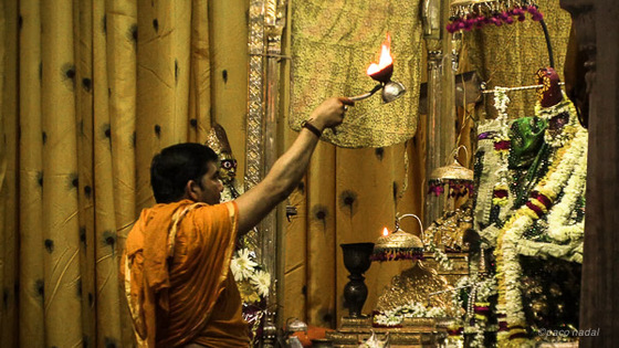 El principal templo de Jaipur dedicado a Krishna, encarnación de Visnu que representa el amor, está en la ciudad vieja y celebra hacia las 18:30 el principal de los rezos del día. La ceremonia está abierta a todos los interesados, siempre que se descalcen para entrar y no vistan ninguna prenda de cuero. Los fieles cantan y rezan mientras un monje mueve una antorcha en torno a la figura del Dios y más tarde los bendice con agua.