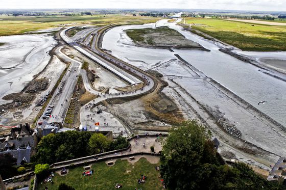 En 10 años se ha conseguido invertir el proceso gracias a la presa construida en la desembocadura del río Cuesnon para devolver al mar, como una gigantesca cisterna de baño, los más de 700.000 metros cúbicos de limos que deposita cada año la marea alrededor de la roca.