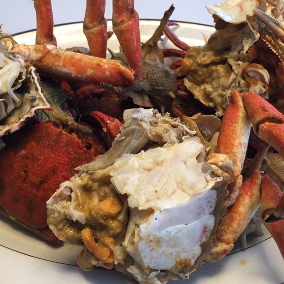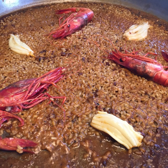 ¿Cocinaba a ojo? Sin duda, como a mi me gusta y divierte. Nada estaba medido, todo era fruto de la intuición y de sus conocimientos. Un espectáculo ver actuar de esta manera a un cocinero creativo de su envergadura. Por si no fuera suficiente, al tiempo que preparaba la bullabesa ponía a punto varios aperitivos: tortellini de pollo asado, coca de escalibada, tarta de hojaldre con anchoas y col rellena. “Sentaos, voy a escalfar los pescados”, nos comentó. Disfrutamos primero de la sopa con tropezones de congrio; después llegaron los pescados hervidos acompañados de la salsa de patatas con alioli, y luego las centollas y cañadillas. Cuando ya creíamos haber terminado se presentó en la mesa con una paella gigante, película finísima de arroz y espardeñas elaborada con el mismo caldo.