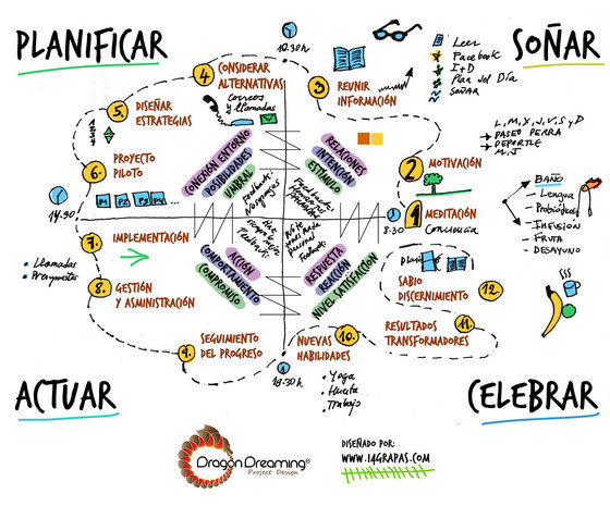 Gráfico Ejemplo de como aplicar Dragon Dreaming en el día a día – Fuente: 14grapas.com