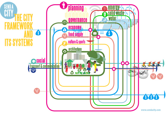 Send a City cree que una solución sostenible necesita contemplar la totalidad del cuadro. Esto aplicado a las ciudades se traduce en que la mejora de un sistema aislado no mejora dramáticamente la vida de las personas, sino que es la mejora del conjunto de sistemas lo que realmente crea impacto.