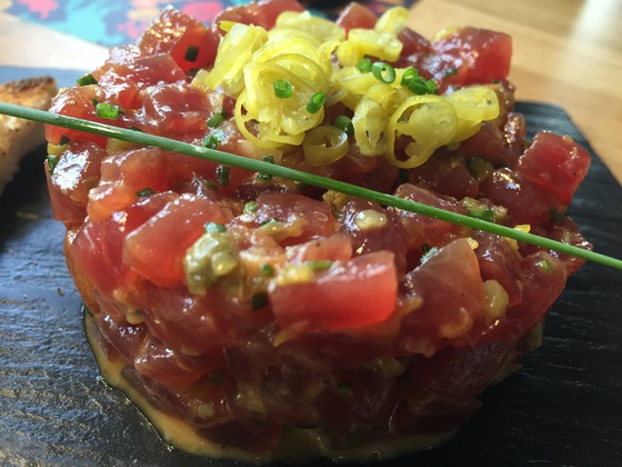 Después de acomodarnos en una de sus mesas corridas pedimos las raciones más vendidas. “Te las enumero por orden”, me comentó Iñaki: “1) Paella 2)Tortilla de patatas 3)Calamares 4) Chuletón a la brasa. Depende de los días, también salen mucho la bomba de la Barceloneta, la ensaladilla, el pan con tomate y el tartar de atún rojo. De nuestros típicos pintxos vendemos 3.000 diarios. Todo recién hecho, preparado al momento”.