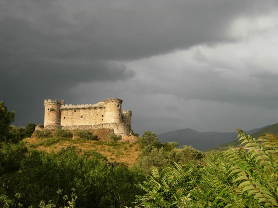 Los cuatro grandes torreones cilíndricos del castillo de los Alburquerque en Mombeltrán (Ávila) (1460) son la referencia visual del valle del Tiétar. Al fondo, como telón de piedra, la sierra de Gredos, un ecosistema montañoso de picos y lagunas glaciares donde viven más de 3.000 cabras montesas.