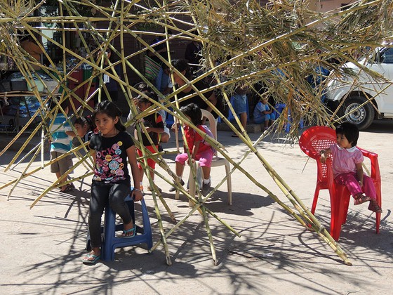 Se empezaron a colocar cobertizos a distintas alturas y distintas direcciones, creando espacios de sombra y juego, unidos mediante alambres así como también utilizando maderas, piedras y otros materiales. Paralelamente a su construcción, distintas actividades tomaban lugar bajo los nuevos cobertizos: cine al aire libre, mercados, espacios de reunión y recreación…