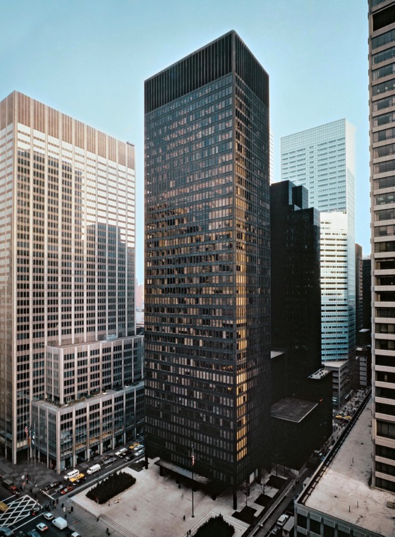Seagram de Mies van der Rohe, en Nueva York frente a la plaza que el edificio cedió a la