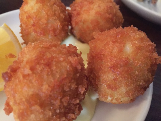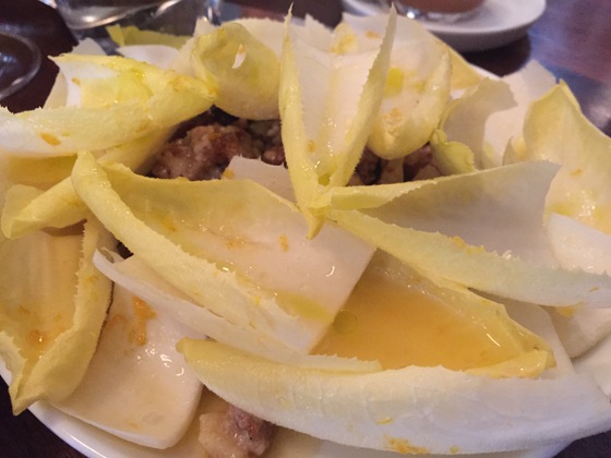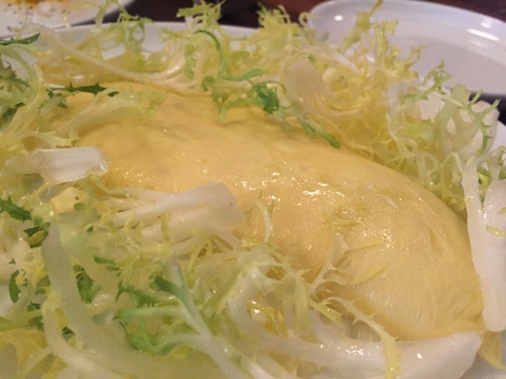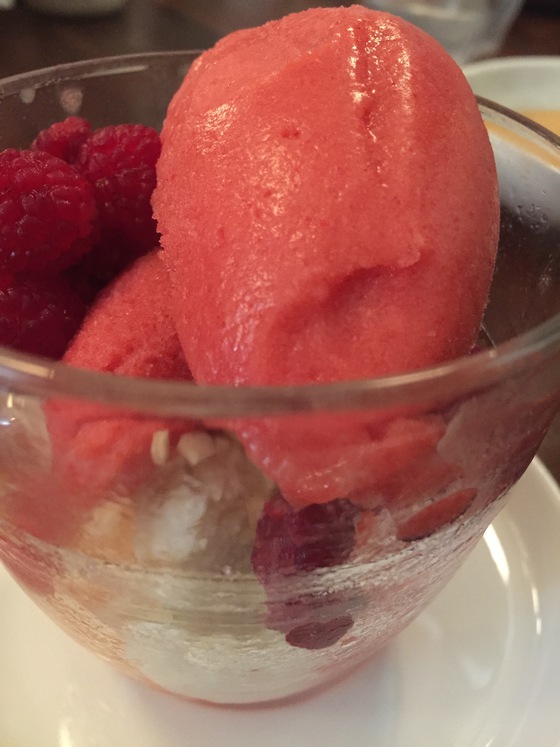Primero una ensalada de endivias con anchoas y avellanas, luego croquetas de patatas y bacalao con alioli, y enseguida una burrata sobre jugo de vegetales con pan tostado y rallado. Un arranque de nivel. En la siguiente tanda dos muffins ingleses rellenos de pescado ahumado y rabanitos, otros tantos bocadillos de huevo con panceta y aguacate, y una tortilla francesa rellena de calabaza y queso gouda cubierta de escarola. Por último un dumpling de queso ricota con champiñones y queso pecorino sardo. Platos imaginativos, la mayoría de alma mediterránea, que compartimos al centro. De postre una delicada panna cotta servida en plato y un sorbete de fresas al queso mascarpone. Todo bien. Solo el café americano, demasiado extraído, desmerecía de lo demás.