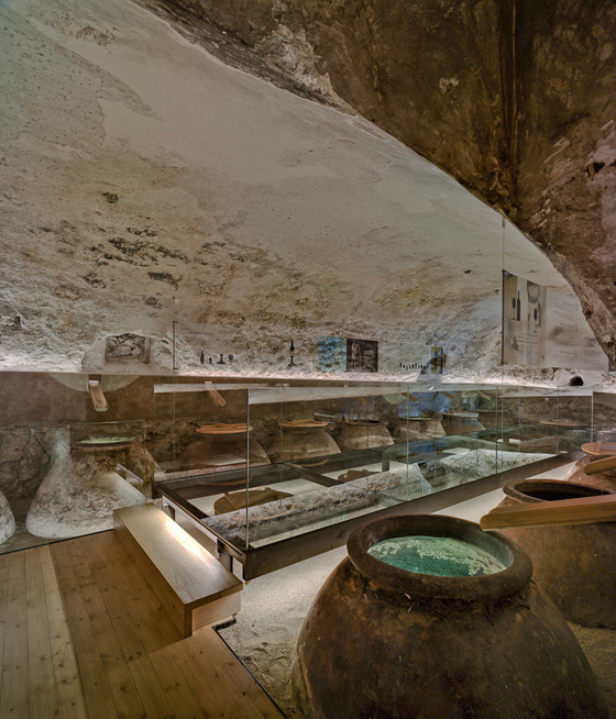 La Casa De La Tercia, en Cehegín (Murcia), era el lugar donde se recaudaban los diezmos que pagaban los habitantes de la villa a la Orden de Santiago. En la planta semisótano de ese edificio con fachada barroca del siglo XVII había una bodega de planta rectangular. Estaba quebrada en dos tramos de galería y tenía una cubierta abovedada construida con mampostería y mortero de cal. Junto a la bodega había además otra galería menor adosada en la que se alienaban las tinajas donde se guardaba el vino recaudado. En ese marco, el arquitecto José Luis López Ibáñez, de Inmat Arquitectos, ha construido una escuela en la que aprender sobre el vino.