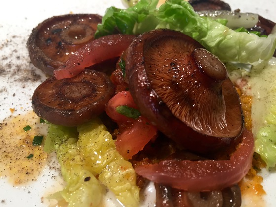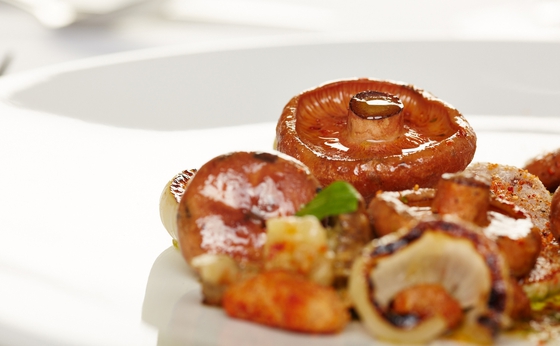 En sus mesas nada de setas con ajo o con huevos, ni por supuesto revueltos. Solo recetas creativas capaces de realzar los sabores de cada una: hongos boletos con alcachofas y crema de patatas; níscalos escabechados con berenjenas asadas; amanitas cesáreas con aguacate, granada y piñones; cantarelas con pargo, puré de apionabo, avellanas y lombarda… Una cocina diferente que se brinda en dos menús de 4 o de 6 platos en los que cada uno gira en torno a una seta distinta. Especies de temporada cocinadas a las pocas horas de recolectadas.