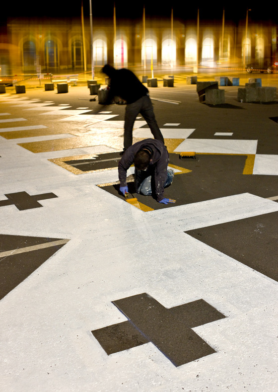 Javier Serrano es el arquitecto de Boa Mistura, un colectivo que, junto a él, capitanean dos licenciados en Bellas Artes, un publicista y un ingeniero de Caminos, Canales y Puertos. Todos son españoles, jóvenes y probadamente cosmopolitas. Han trabajado en Serbia, Panamá, Estados Unidos o Argelia. Todos son también chicos de barrio: se conocieron en la calle, haciendo graffiti cuando tenían 15 años. Así, es Javier quien explica que stortorget es la palabra noruega que define el espacio público que es una plaza. Eso fue lo que Ecosistema Urbano quería recuperar. Al principio invadieron el aparcamiento con rocas que podían servir como bancos. Pero ni eso disuadía a quienes querían aparcar. Por eso recurrieron a los expertos en pintura. En manos de Boa Mistura, los 1.500 metros cuadrados del suelo de la plaza se convirtieron en una alfombra tejida a brochazos con una ornamentación que, de lejos y en grande, remitía a las cenefas geométricas de los jerseys de lana tradicionales noruegos: un nuevo manto sobre el suelo, una plaza recuperada con una inversión mínima.