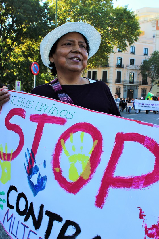 Obdulia Guevara de la Asociación deMujeres esterilizadas de Huancabamba, que busca verdad, justicia y reparación para las 300.000mujeres peruanas esterilizadas de manera forzadadurante el mandato de Alberto Fujimori, la mayoría campesinas y de zonas empobrecidas, era una de esas personas que tras haber sido leído el manifiesto, al final del recorrido, seguía en las calles. Llegó junto a otras compañeras de Mujeres del Mundo desde Bilbao. “Ha sido impresionante, he estado emocionada. Tuve que dejar de sujetar la banderola para salir de la marcha y ver cuánta gente había”, comenta con una gran sonrisa mientras anhela con que algún día una marcha de esas características se de en Perú. Hasta entonces no descansará para que esas mujeres que sufrieron en sus cuerpos, en sus vidas la violencia de políticas públicas traducidas en la violación de sus derechos sexuales y reproductivos encuentren reparación tras una larga espera de dos décadas.