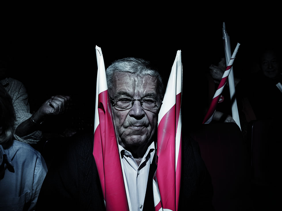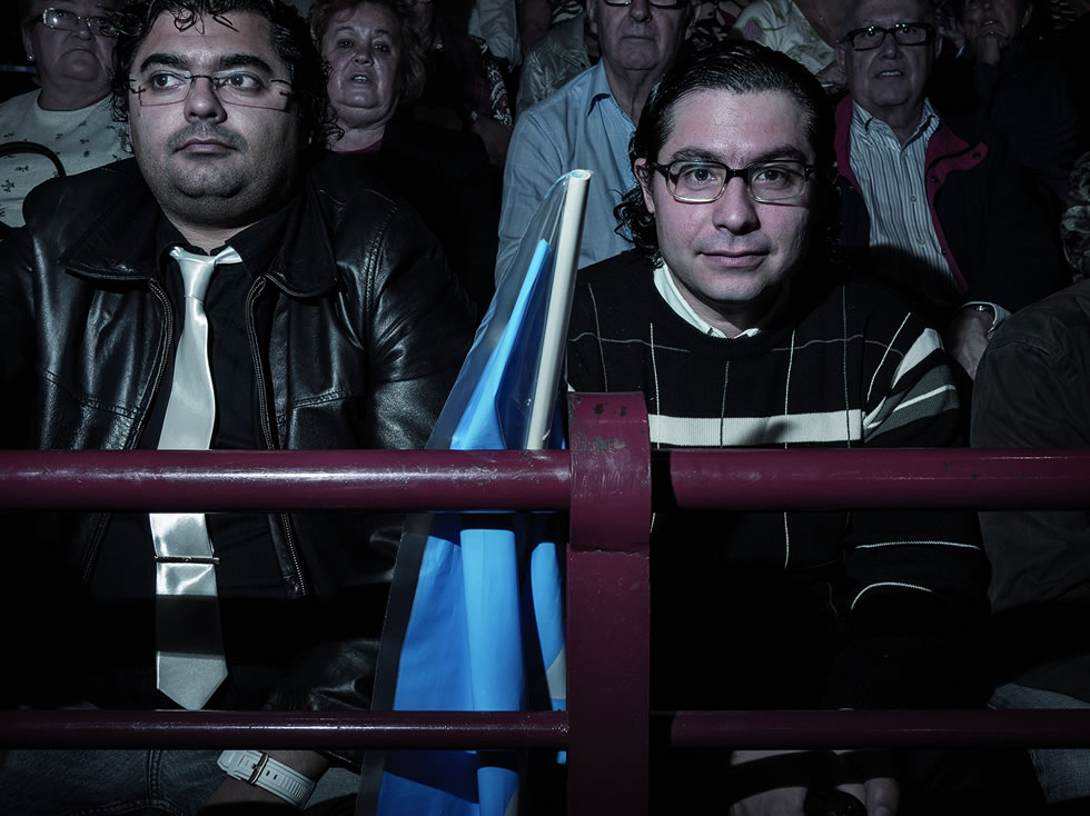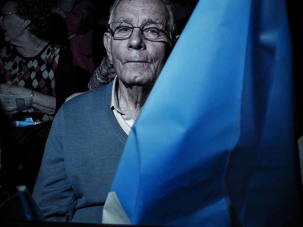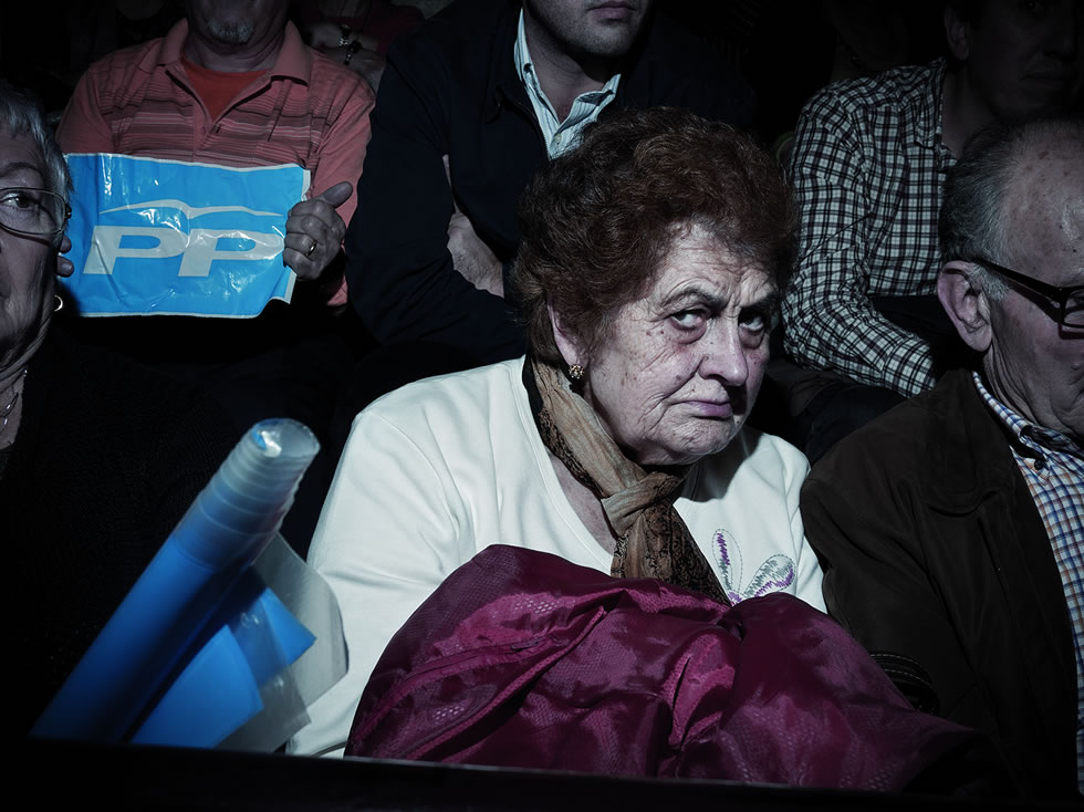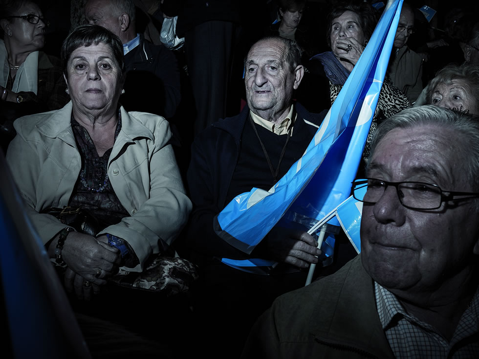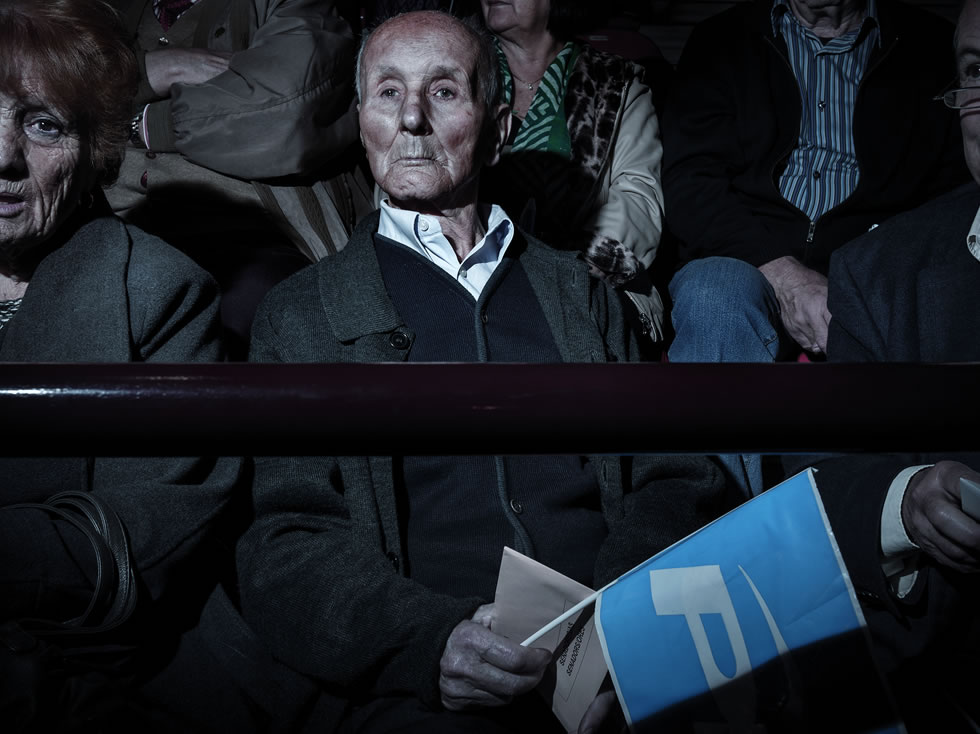 Al desplazar el ratón sobre una imagen, esta dará paso a su pareja. Así presentamos 'Devotos', un fotolibro en el que Toni Amengual retrata a incondicionales populares y socialistas en los mítines de 2011