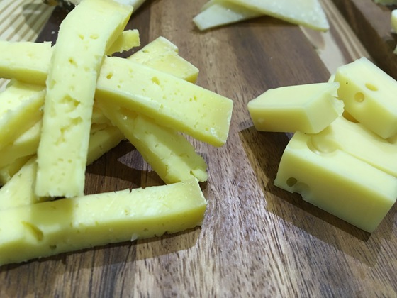 Quesos de vaca de pasta cocida y prensada Una de las muestras era de leche pasteurizada, la otra cruda. Ambas con tres meses de curación. El queso artesano, francamente bueno, ganó por goleada al industrial, de textura gomosa, una diferencia abismal.