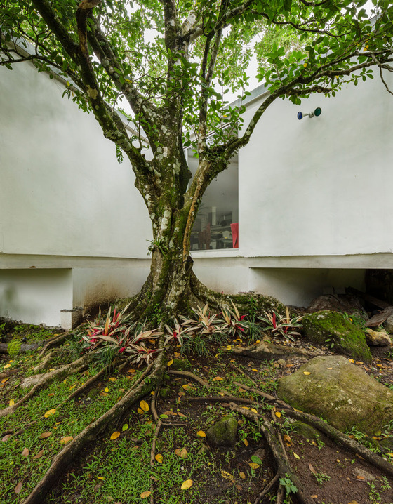 Así que el primer trabajo consistió en acompañarlos a visitar ese terreno de tierra que habían adquirido en el Valle de Antón, 120 kilómetros al oeste de la Ciudad de Panamá. Estuvieron cuatro meses para visitarlo, conocerlo y decidir un diseño. Durante las primeras visitas caminaron y escucharon. Observaron los árboles, las rocas volcánicas, el agua que surte por todos lados y comenzaron a pensar la casa a partir del lugar. Dillon cuenta que el terreno es representativo de la ecología del área. Tiene un alto nivel freático, “ojos de agua y quebradas, suaves pendientes y abundantes arboles entre medio de enormes rocas volcánicas esparcidas por doquier”. Eso querían mantener. Uno no llega a un lugar que le gusta para cambiarlo.