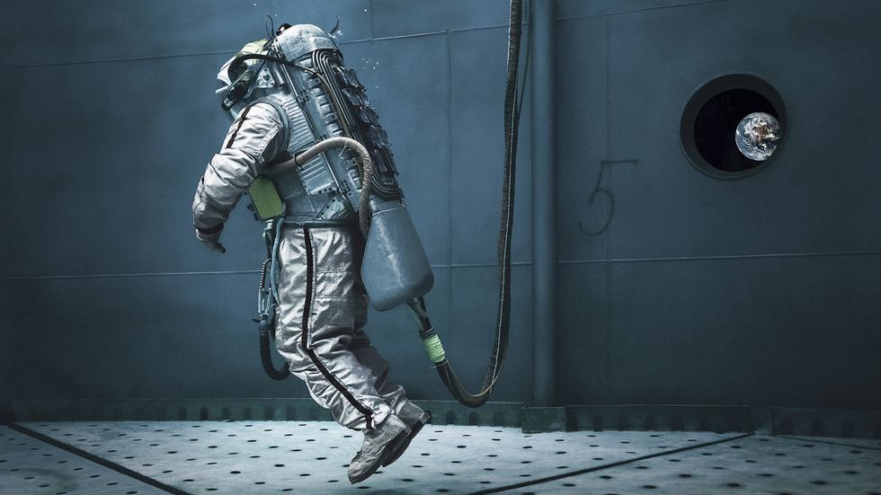 AL fotógrafo Michael Najjar le fascinaban los viajes al espacio. Pero los astronautas, pensaba, no habían sabido explicar a los profanos qué suponía vivir una experiencia tan extraordinaria: los artistas, estaba convencido, eran los indicados para hacerlo. En esta imagen, liquid gravity (2012), perteneciente a la serie outer space, Najjar retrata una sesión de entrenamiento en el centro ruso Yuri Gagarin: los participantes tuvieron que sumergirse en un tanque de agua para experimentar la ingravidez. Lección imprescindible para superar con éxito la expedición.