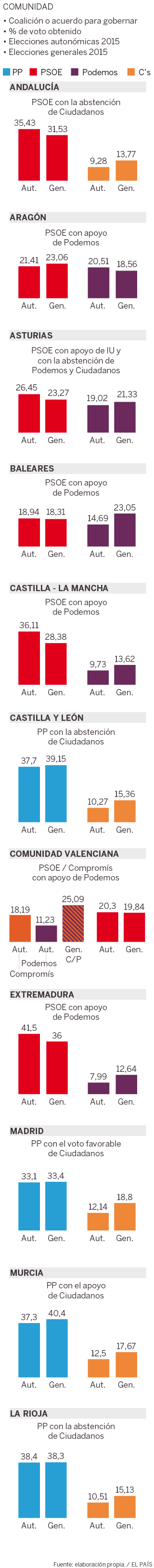 Variación del voto a los partidos entre las elecciones autonómicas y las generales de 2015