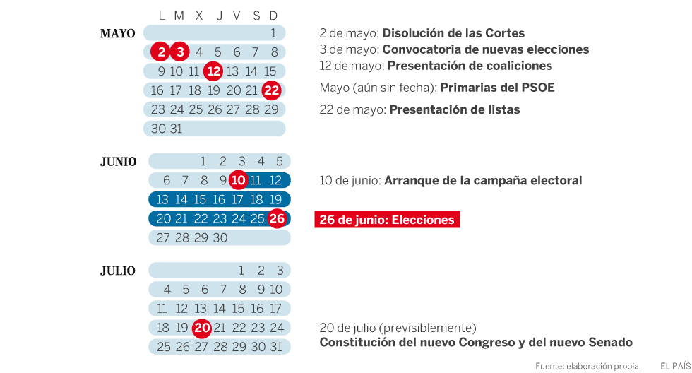 Posibles fechas de una nueva convocatoria de Elecciones Generales en 2016