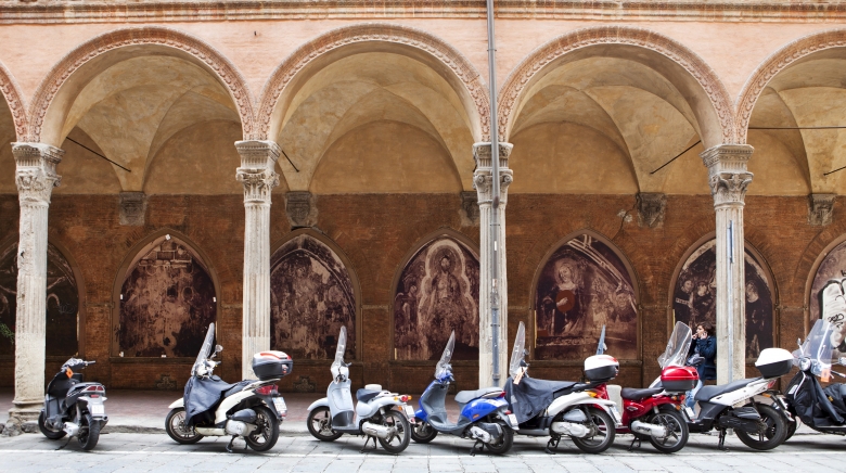 Los soportales y las motocicletas son distintivos de Bolonia, así como las pastelerías. Cathrine Stukhard (Laif)
