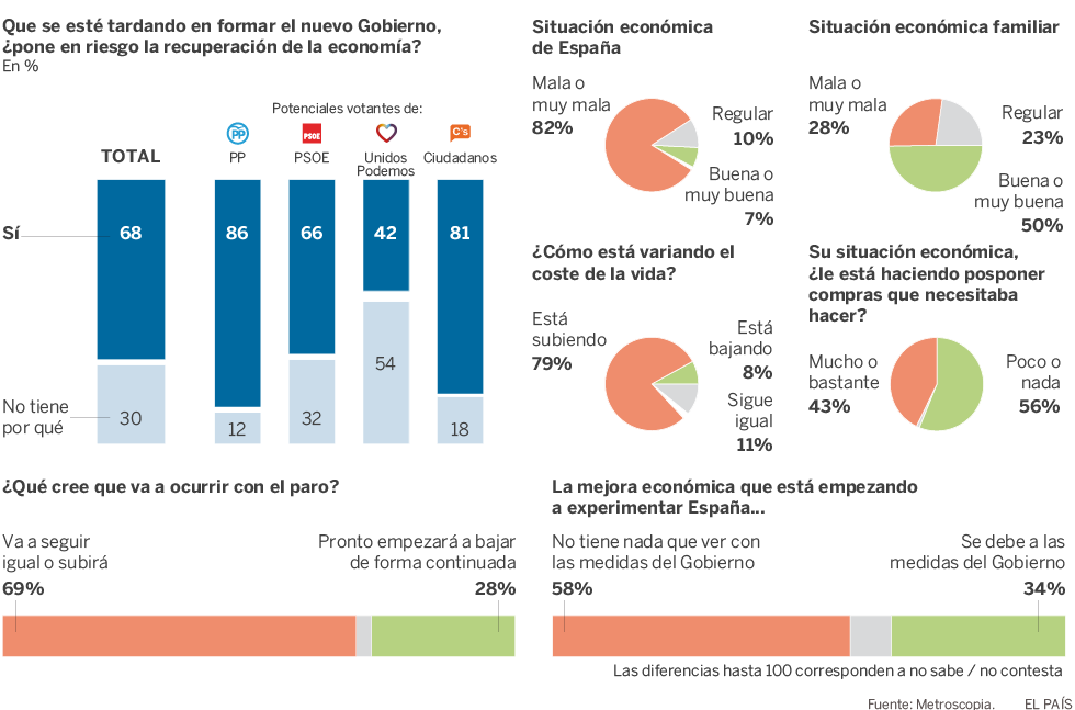El 68% de los encuestados cree que la tardanza en formar nuevo Gobierno pone en riesgo la economía