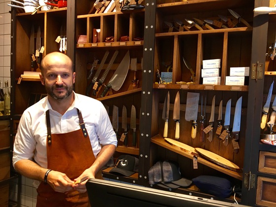 Quien traspasa sus puertas parece que realiza un viaje en el tiempo. De un lado a otro, paredes de azulejos blancos, una balanza antigua, un tajo de madera que ha soportado centenares de cortes, y un mostrador atiborrado de carnes rojas. Aparte, rincones con delantales de cocina y cuchillos de la marca Pallarés Solsona