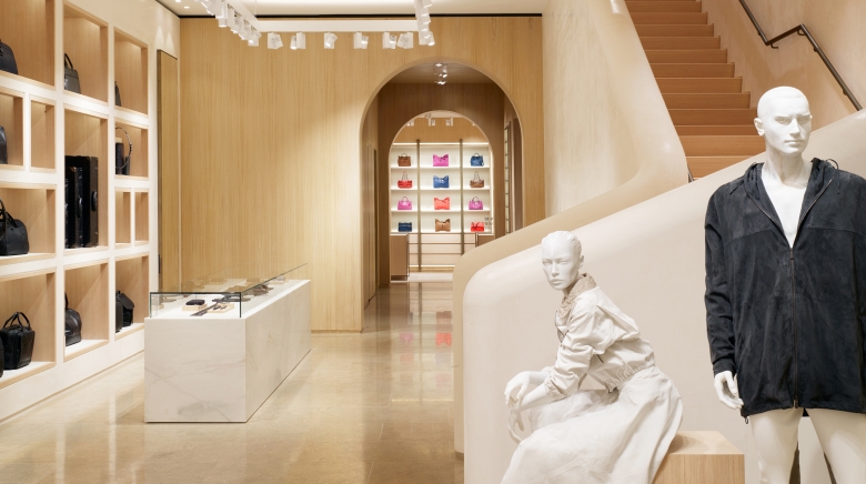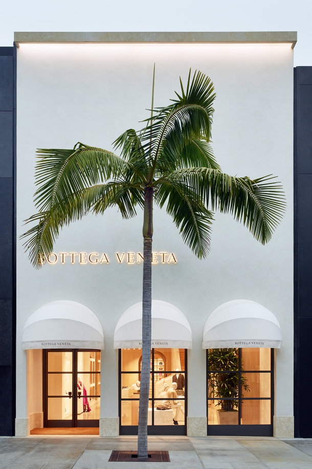 A medida que expone las tesis de su filosofía, cada una de las piezas va encontrando su encaje en el puzle: se trata de un hombre austero que pergeña un lujo sin boato para venderlo, como no podría ser de otro modo, en una tienda sobria. La palabra adecuada, apunta, es “contención”. “Inspirado en el revival mediterráneo de principios del siglo XX”, el creativo ha elegido la vibrante ciudad californiana –y su más reputada calle, Rodeo Drive– como sede de la segunda maison de Bottega Veneta tras Milán, ubicación natural de una compañía cuya identidad se define por la maestría artesana en piel de la vecina región del Véneto. Una pericia materializada en la técnica del intrecciato, que consiste en cruzar diagonalmente finas tiras de cuero y que está presente en multitud de sus productos. Rodeado de tiendas fastuosas, algunas bañadas en brillos cegadores, Maier ha preferido el estilo blanco y recto, matizado por las curvas de arcos y barandas, para dar forma al único espacio, junto con el italiano, donde muestra todas las facetas de la empresa: desde bolsos y complementos hasta ropa, perfumes, joyas y accesorios del hogar.