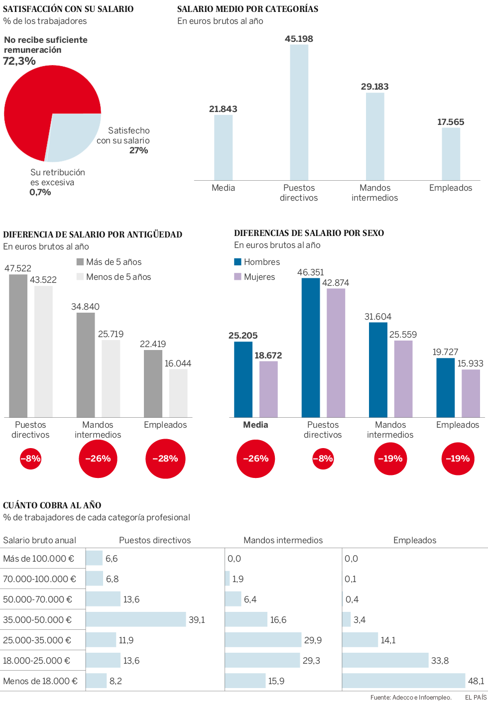 Aunque la insatisfacción es general (72%), mujeres y nuevos empleados tienen más motivos para estar descontentos