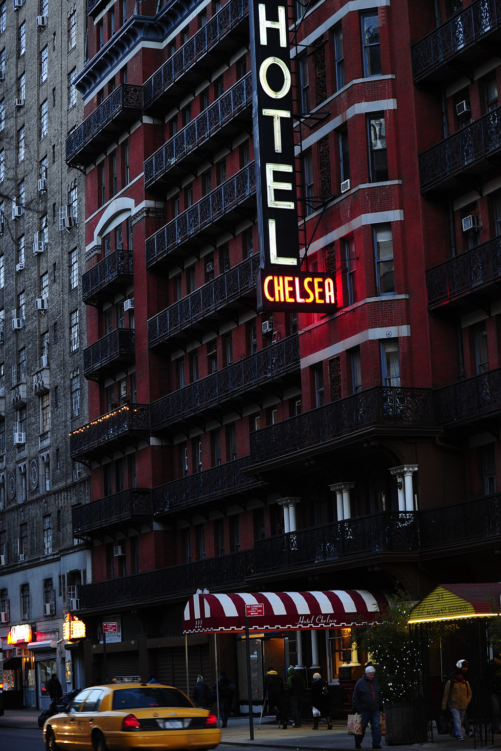 El hotel Chelsea (23 Oeste entre la Séptima y la Octava Avenida), inmortalizado en una canción de Leonard Cohen, alojaba a poetas, escritores, artistas… Y traficantes. Entre sus huéspedes ilustres figuran Bob Dylan, Jimi Hendrix o Janis Joplin. Arthur C. Clarke escribió ahí 2001: Una odisea del espacio. El ya mencionado Dylan Thomas se alojaba ahí en tiempos de su muerte. Algo de todos ellos permanece entre las paredes de este edificio de 1883. Pero en la habitación 100 subsiste algo más.