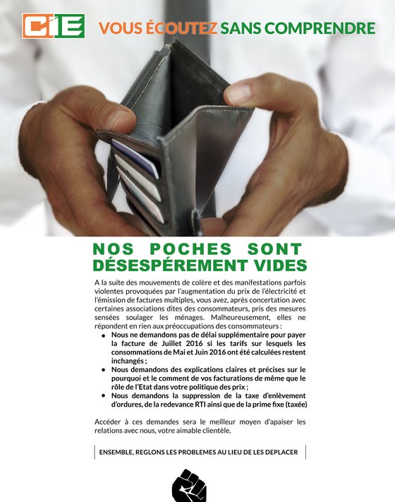 La ira a pie de calle se centró en la CIE, a la que Ouattara acusó de aplicar mal la subida eléctrica decretada por su propio gobierno para este año, a instancias de las instituciones financieras internacionales. Sin embargo, es una rabia amarga que expresa muchas otras frustraciones, como las de los excombatientes que no han recibido todavía sus primas tras participar en la guerra que llevó al poder al gobierno actual hace ya cinco años o las empresas públicas bajo amenaza de privatización. Además de estos malestares, Costa de Marfil puede presumir de una sanidad deficiente, un sector educativo público en necesidad y huelga permanentes e impuestos y subidas en tarifas de servicios y precios de la cesta de la compra que resultan asfixiantes para las precarias economías domésticas marfileñas. A pesar de su excelente crecimiento en términos macroeconómicos, se trata de un país con altas tasas de analfabetismo, economía informal y paro que se traducen en una enorme frustración social y en la tentación del recurso a la violencia.