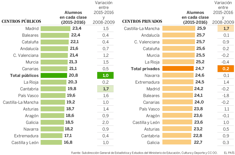 Variación de estudiantes entre los cursos 2008-2009 y 2015-2016