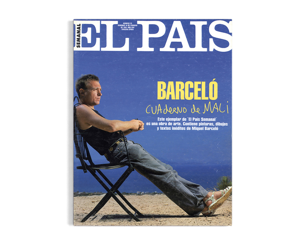 PODRÍA HABERLA tirado, olvidado, traspapelado. Después de todo, es un poco de papel. Pero uno no tira, olvida, traspapela cosas como esas. Que son mucho más que un poco de papel. Todavía está ahí, 24 años más tarde, en el estante de mi biblioteca donde tengo los diccionarios: un ejemplar de El País Semanal del 16 de febrero de 1992. En la portada hay un hombre sentado frente a un fondo azul frenético. Debajo, esta frase: “Barceló. Cuaderno de Malí. Este ejemplar de El País Semanal es una obra de arte. Contiene pinturas, dibujos y textos inéditos de Miquel Barceló”. Adentro, una nota firmada por Soledad Alameda que hablaba de “un artista que vive el borde del abismo”, de un “clásico en vida”. Y algunas fotos, y los dibujos, y esta frase de Barceló: “El cuadro, entonces, está delante de ti y sabes que es más inteligente que tú”. Yo no sabía quién era Miquel Barceló. Tampoco sabía quién era Soledad Alameda. Y no sé, todavía, qué parte de todo lo que vi –¿el texto, las fotos, la frase, los dibujos de una austeridad pánica, la palabra Malí que impactaba en el centro del magnetismo cándido que yo sentía entonces por África?– fue la que me clavó el anzuelo del diablo, la que me hizo decir “eso quiero”. Donde “eso quiero” debe leerse como un eufórico aunque muy difuso sentimiento, mezcla de “quiero escribir en esa revista” con “quiero entrevistar a alguien como Barceló”, con “quiero ir a África”, con, sobre todo, esta certeza: “Quiero publicar alguna vez algo que haga que alguien sienta lo que sentí yo al ver esto”. Y lo que sentí al ver eso fue: “¿Cómo he podido vivir hasta ahora sin saber que existían este hombre y estos dibujos?”./
