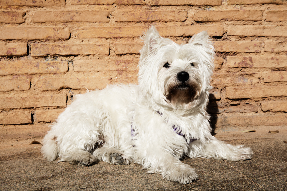 SENTADA en un sofá verde, la micropoetisa Ajo charla con su perr a. “Me he vuelto transespecie. Ya no diferencio entre un animal y una persona”. Hace 10 años que la compró (dice que hoy adoptaría). Fue cosa de la envidia. Dos amigas tenían un perro y no dejaban de hablar de él. Empezó a imaginar cómo sería su vida si tuviera uno. “Ahora me saludaría, ahora se sentaría en el sofá…”. Y de tanto imaginarlo, quiso tenerlo. Así llegó a su vida Musa María, su pequeña westi blanca de origen húngaro.